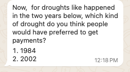 We can frame the question as a contest--how well could a farmer playing from a phone represent the preferences of their community over which kind of year is more important, 1984, or 2002.